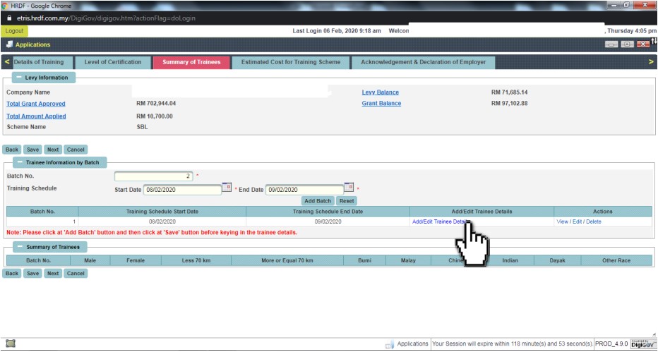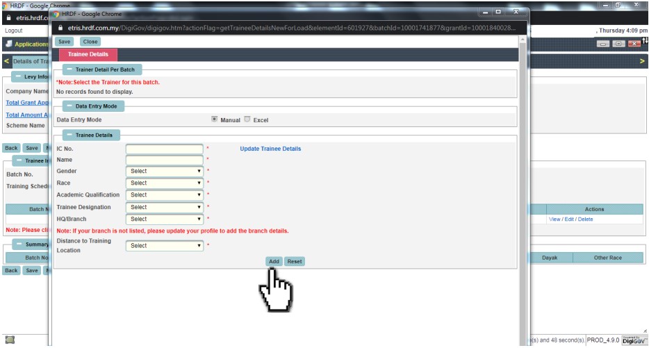 • After clicking “Add Trainee Details“, you need to enter all the required details of participants