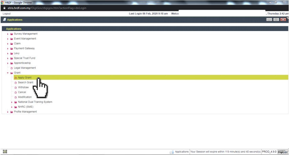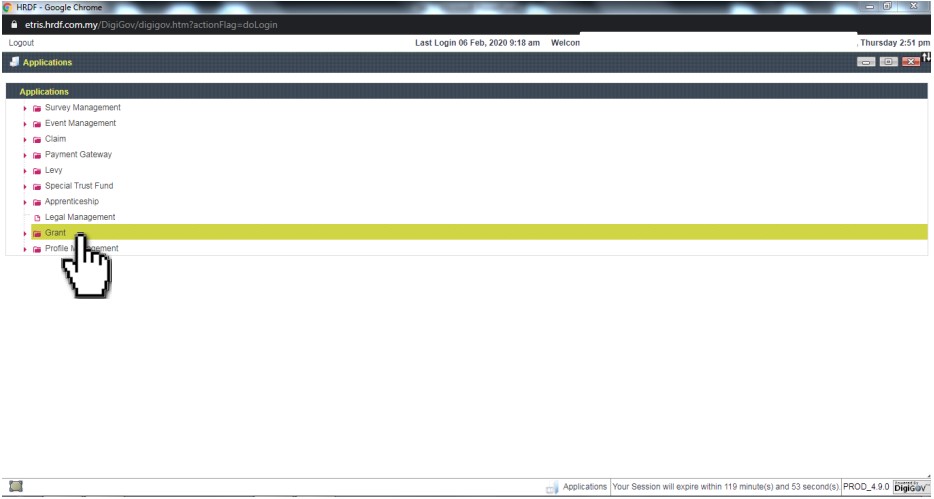 Step 4: Click on the “Apply Grant” sub-folder on the left side under the “Grant” folder
