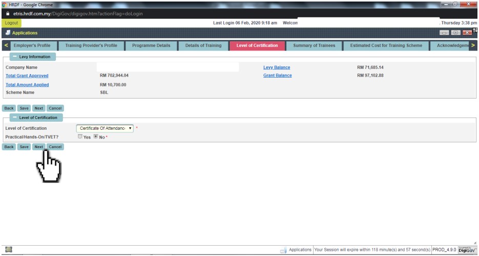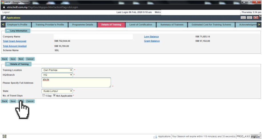 • Choose the training from the list. For “HRD Corp Focus Area“, choose “Not Applicable